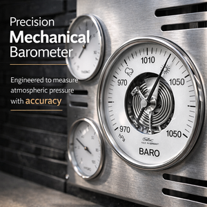 • Equipped with three precise instruments: barometer, hygrometer, and thermometer