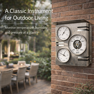 Monitor the weather with precision and style using the Fischer 818-01 Outdoor Weather Station. This square stainless steel instrument combines a thermometer, barometer, and hygrometer in one compact device. It provides accurate readings for temperature, air pressure, and humidity, making it ideal for home or garden use. Whether you are checking weather today or preparing for upcoming conditions, this station offers reliable data at a quick glance.
