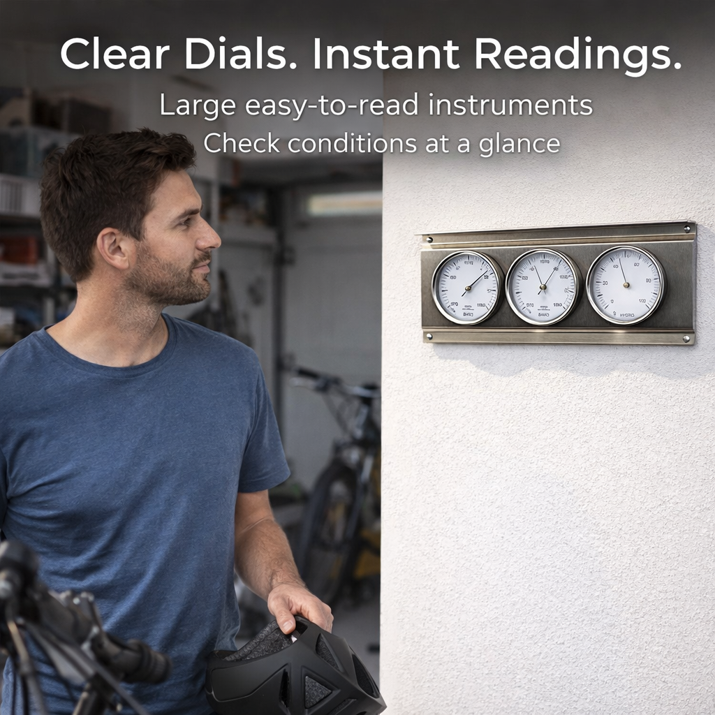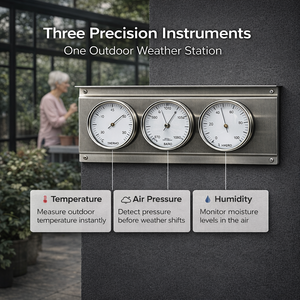 A durable and elegant weather station, meticulously crafted from stainless steel. This unit delivers accurate readings in all conditions, making it ideal for any outdoor environment. It expertly combines a thermometer, barometer, and hygrometer in one compact and stylish device, giving you all essential measurements at a glance.