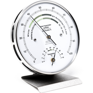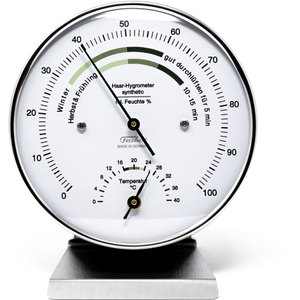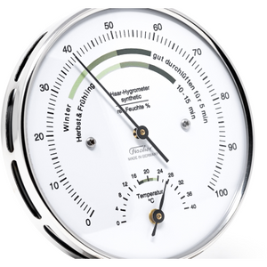 - Hair-Hygrometer synthetic , combined with bimetal thermometer to measure the room climate