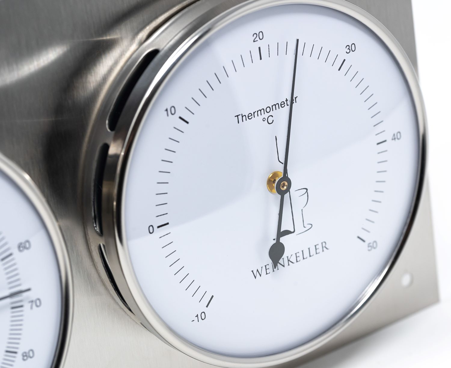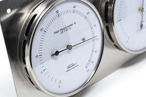 This precision instrument combines a real hair hygrometer with a bimetal thermometer, giving you accurate humidity and temperature readings at a glance. Handmade in Germany and finished in polished stainless steel, it’s both a functional tool and a stylish addition to your cellar.