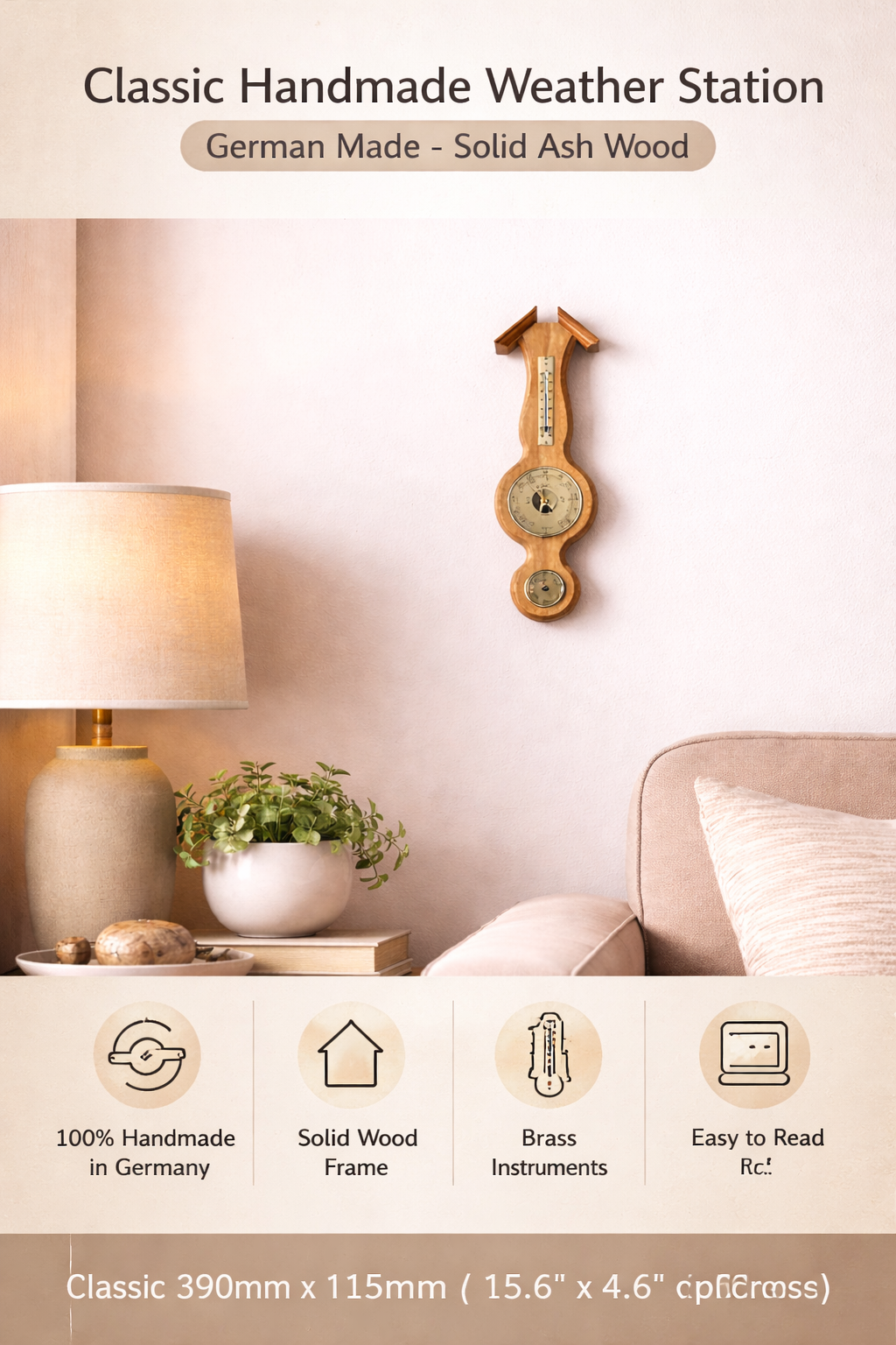 This traditional weather station is perfect for anyone who wants a balance between decorative style and practical functionality. It combines elegance with scientific precision to monitor your home’s air quality and climate. Consider this weather station as a timeless gift or a valuable addition to your living space for monitoring the local weather conditions every day.