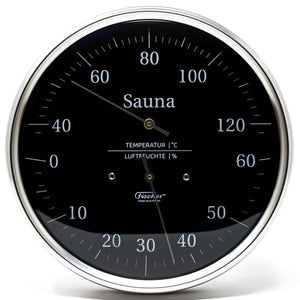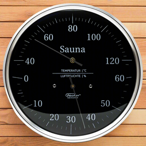Fischer German Sauna Gauge – Black Dial 160mm (Temperature & Humidity)