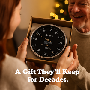 This Black Dial Sauna Thermometer & Hygrometer is not just a pretty face. It’s a high-precision climate instrument engineered in Germany by Fischer — a company that’s been in the business of scientific accuracy since before your sauna was even an idea.